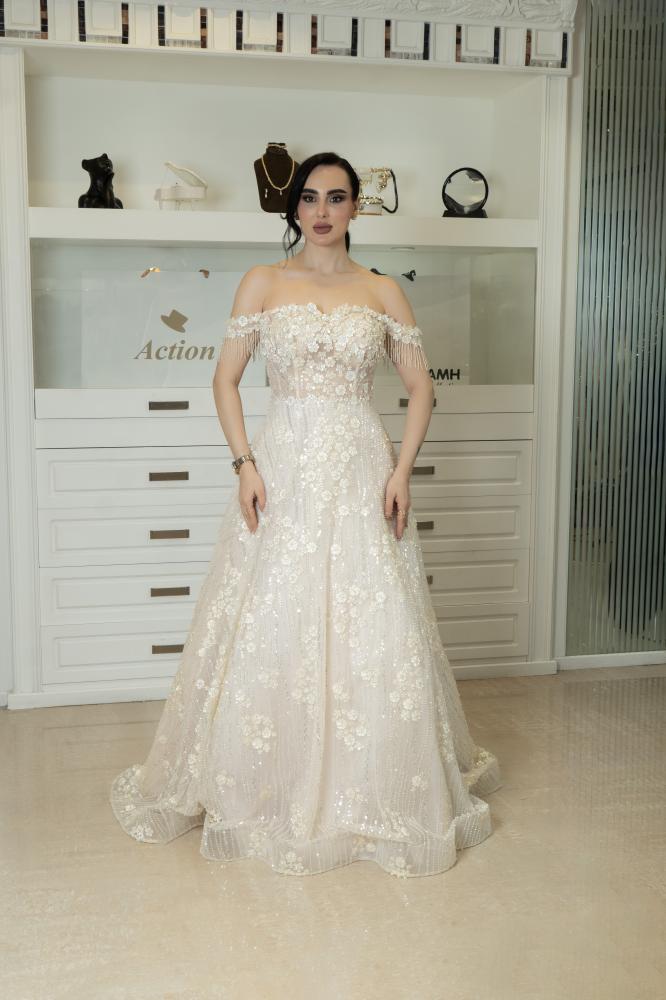 - فستان ابيض منفوش مثالي للسهرات، الخطوبات، والمناسبات الخاصة