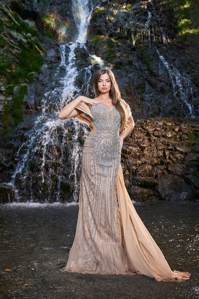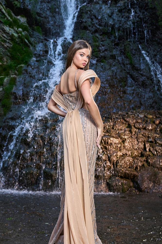 فستان بيج سهره فستان بيج ضيق ومطرز بتفاصيل فخمة، يبرز جمال القوام ويعطيك حضور أنثوي ناعم وأنيق في كل مناسبة.